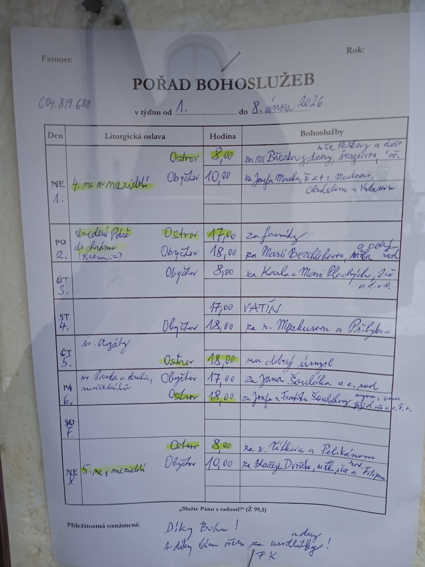 ČT- 18:00 (zimní čas), 18:30 (letní čas)